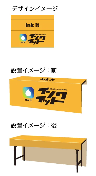 展示会ブースに設置するテーブルにつきもののテーブルクロス。