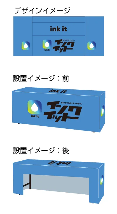 あわせて、展示会ブース用のテーブルクロスも制作しました。