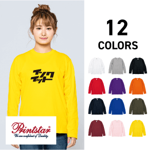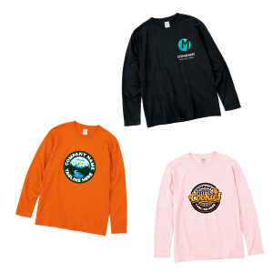 キッチンカーやイベントのスタッフユニホームにおすすめの長袖Tシャツです。ご入稿いただいたデザインデータをプリントいたします。サイズ:S〜2XL カラー:12色 型くずれしにくいコットンTシャツです。幅広いサイズとカラー展開でユニホームやスタッフTシャツ、クラスTシャツにもピッタリです。